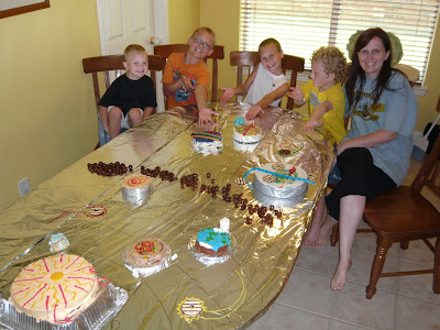 We made this solar system with a foil background, orbits drawn in permanent marker, 4 sizes of cakes plus cupcakes, cookies for comets/moons, gumballs for tiny moons, bridge mix for asteroid belt, lots of fun sparkly frosting, colorful twizzlers for rings on the planets, etc.